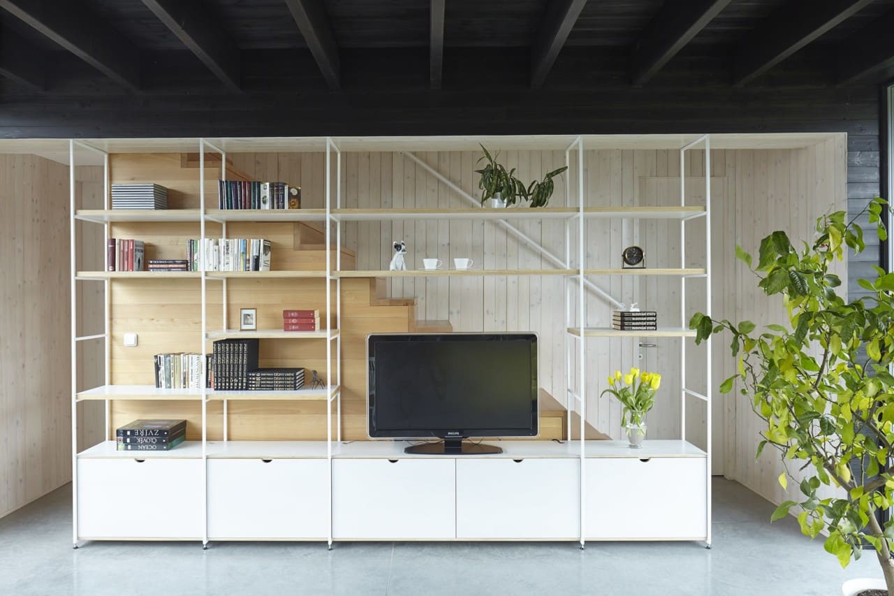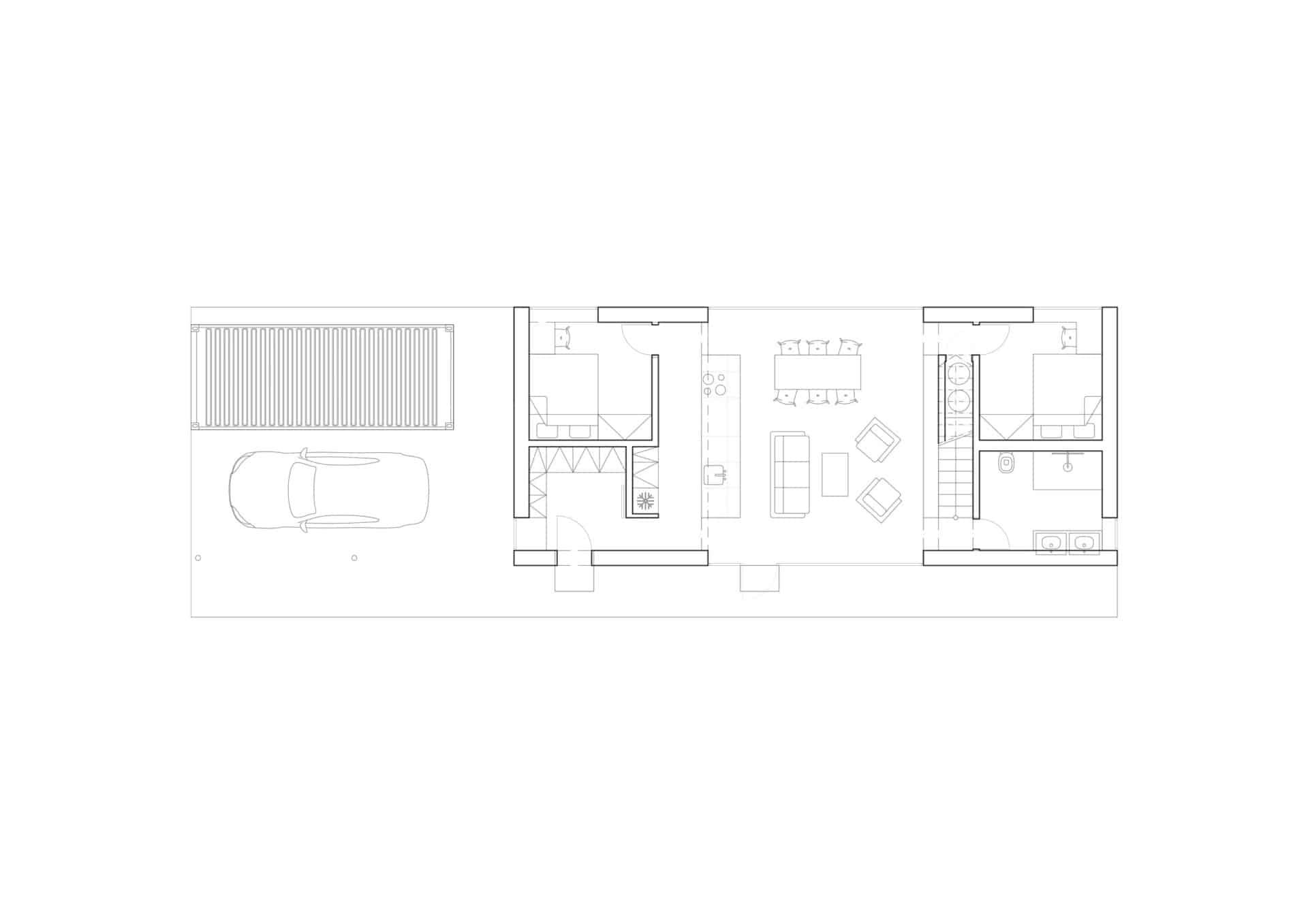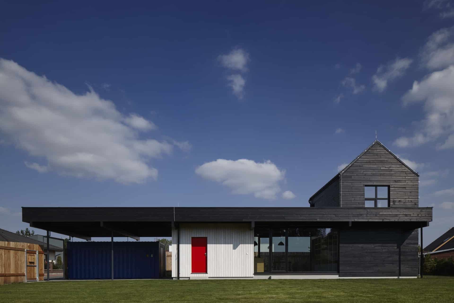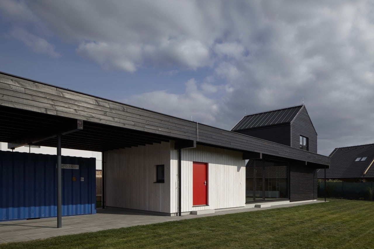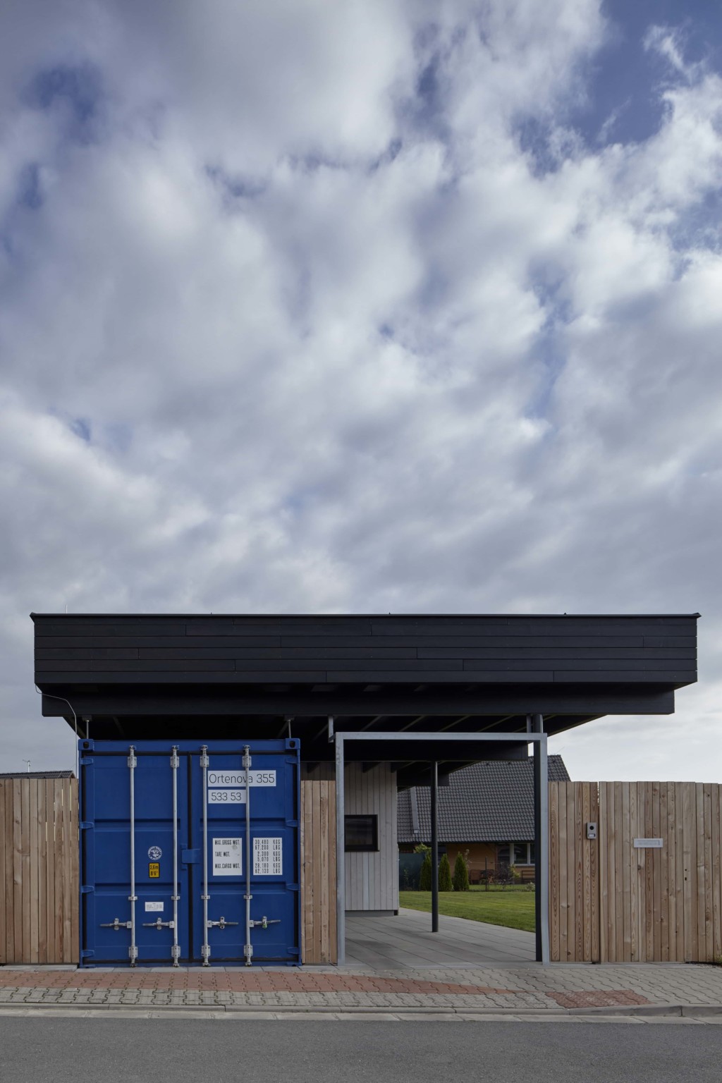 ale sebevědomej dům stojí za dřevěným plotem. Místo garáže máme kontejner, kam dáváme všechno harampádí.