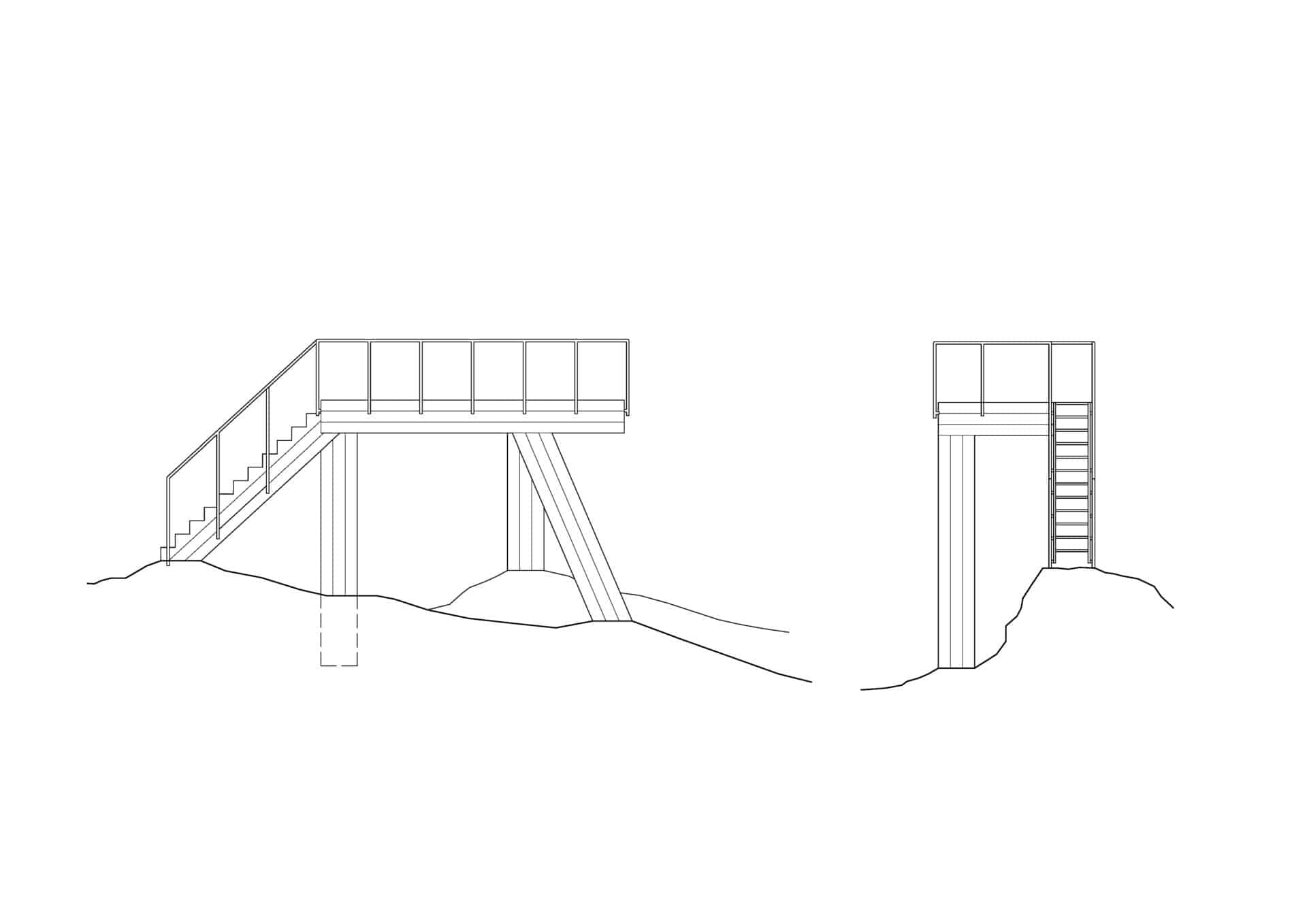 Projekt Hlídek na Stráži začal vznikat v roce 2014, kdy jsme navrhli sérii drobných zastavení na kopci nad Rokytnicí. Koncept projektu se zrodil z původního záměru obce postavit na vrcholu klasickou rozhlednu. Morfologie kopce se však ukázala nevhodná na stavbu vyhlídkové věže, jelikož při standardních výškách neposkytovala dostatečný výhled. Proto jsme se rozhodli pro koncepci několika zastavení na skalách, které vrchol kopce lemují. Inspirací pro lehké stavby z oceli, které jsou opláštěny dřevem, nám byly postavy z erbu města Rokytnice. A tak dnes na město shlíží jeho čtyři patroni – Liška, Medvěd, Ovce a Horník – naše Hlídka na Stráži.