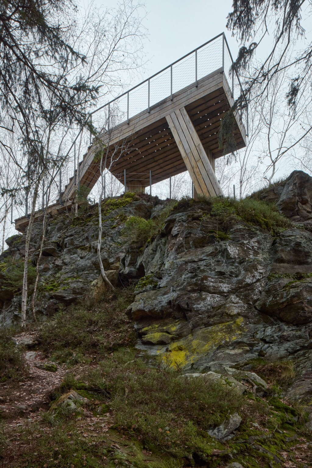 Přes lávku se dostanete k Horníkovi. Stojí na vysoké skále, které říkají místní horolezci Ká pětka. Jeho postava odkazuje na hornickou minulost Rokytnice. Jako symbol Rokytna je posledním ze čtyřčlenné hlídky. Mohutná postava shlíží do údolí Jizery. Prudké schodiště vás dovede na vyhlídku s krásným výhledem. Když se zaposloucháte, uslyšíte možná i šumivé vody řeky, která si prodírá cestu divokým údolím z hor na hranicích s Polskem. Sedněte si na schody a sledujte panorama kopců nad řekou, je tu nádherně.